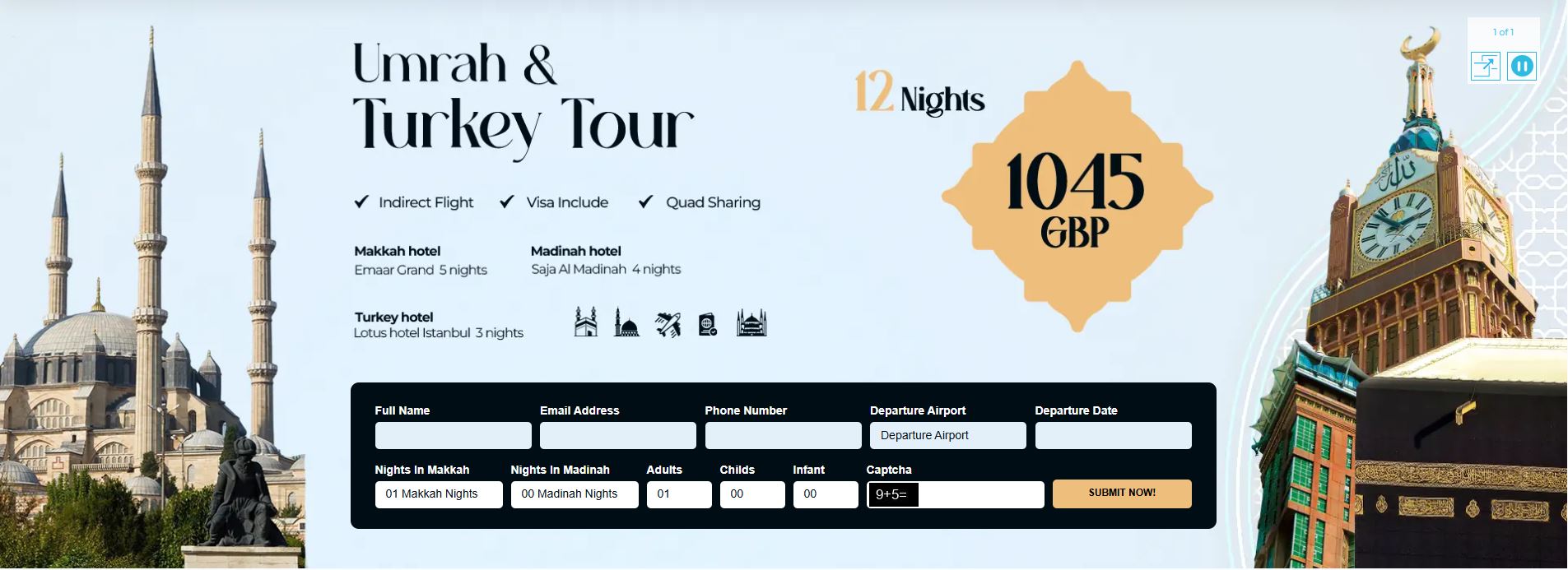 Hajj Umrah Package is a well-known Umrah travel agency in the UK for the services and deals it offers. We offer the greatest Umrah services, such as accommodation, flights, visa arrangements, transportation, and meals. You may trust our experts to book your Umrah because they are very skilled at giving the best Umrah services. To get help with your bookings, call us at 0207-100-6060 or email us at info@hajjumrahpackage.com.